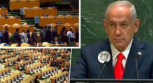 Birleşmiş Milletler Genel Kurulu oturumunda İsrail Başbakanı Binyamin Netanyahu konuşmasına başlarken, salonu terk eden çok sayıda ülke temsilcisi tarafından protesto edildi. Netanyahu, BM 80. Genel Kurulu'na hitap etmek için salona girdiğinde, çok sayıda ülke temsilcisinin salonu terk etmeye başladığı ve salonun önemli ölçüde boşaldığı görüldü.